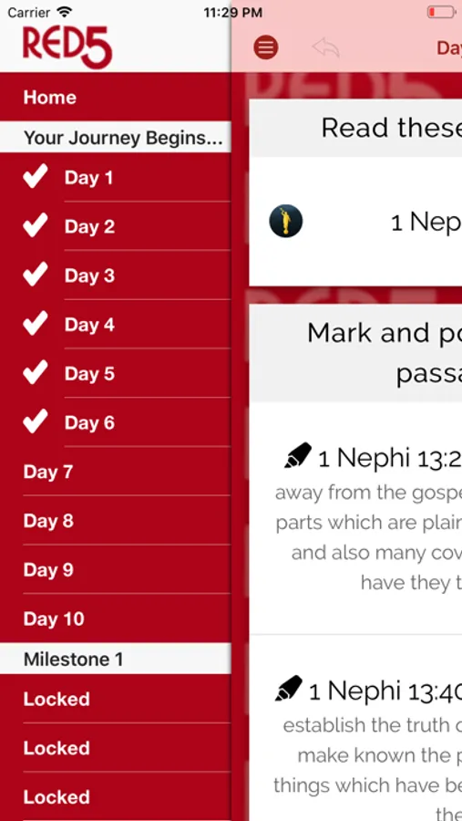 Any notes you make in this app will be available in iTunes as soon as you close the notes drawer. This app is meant to be used in conjunction with the LDS Gospel Library app or with your paper Book of Mormon. Assignments and references in RED5 will open directly in the appropriate place in the Gospel Library app.