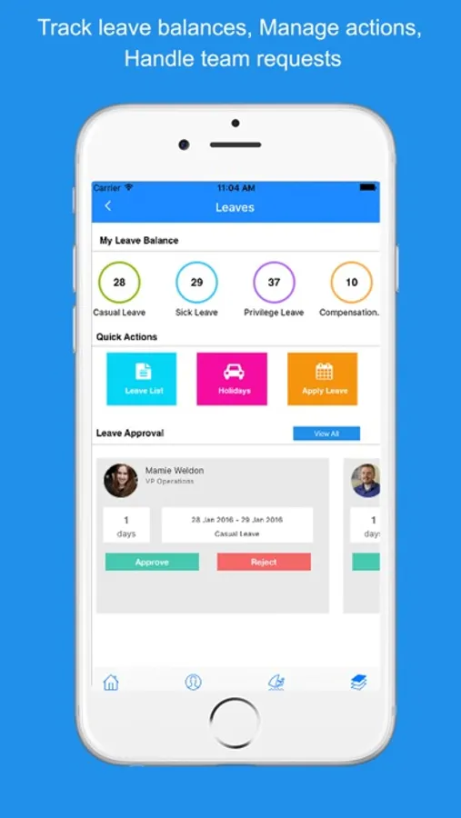 The live updates of your attendance and clock-ins can be viewed with easy and simple daily time record. You can also raise a time change request for any discrepancies found in the daily time record. If you travel to different work location on duty, you can leverage mobile check-in and check-out using TalentOz mobile app.