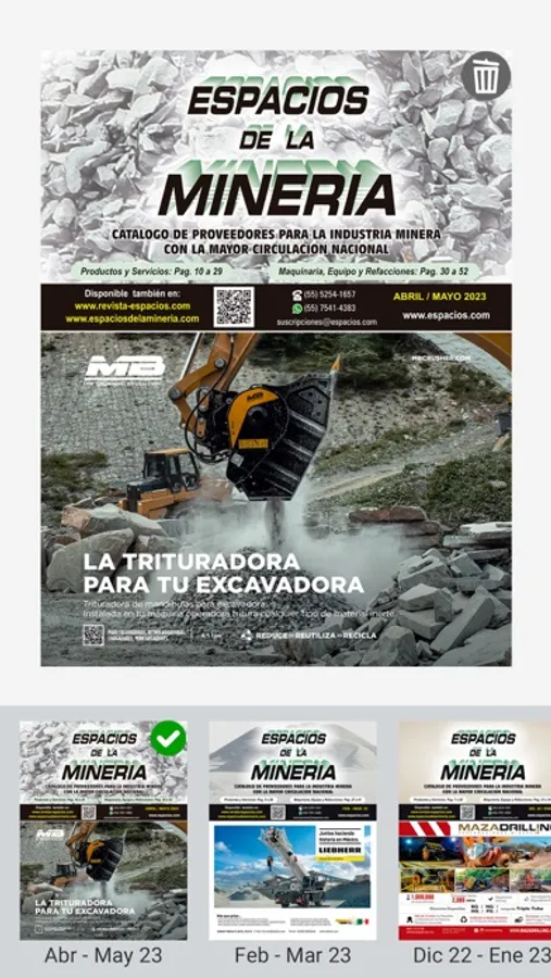 Tenga siempre la última edición en la palma de su mano con información de maquinaria, equipo, herramienta, productos y servicios para minería.