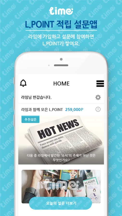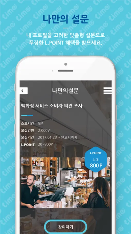 설문 참여만 해도 L.POINT가 팍팍 쌓이는 라임, 지금 시작하세요!