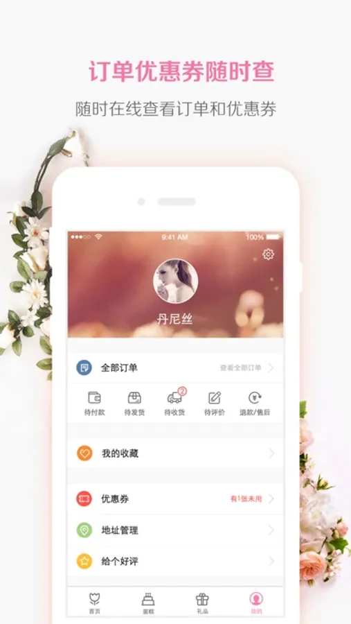 您可以随时随地送鲜花、订蛋糕、选礼物。