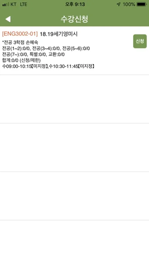 - 수강신청내역 조회
