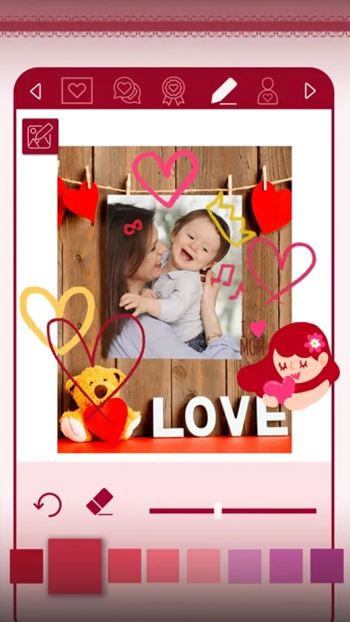 A quick and easy way to decorate your pictures with a personalized love photo frame. Frame your pictures and write messages on them. Share your romantic memories.
