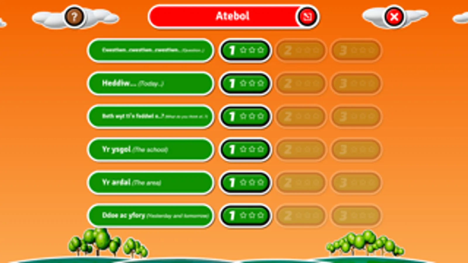 Ar ôl cwblhau’r frawddeg yn gywir bydd ‘tic’ yn ymddangos wrth ymyl yr ateb. Bydd y frawddeg nesaf yn dilyn. Mae’n rhaid cael 6 allan o 10 brawddeg yn gywir i agor yr Haen nesaf - dyma sut mae symud ymlaen i Haen 2 ac yna i Haen 3.