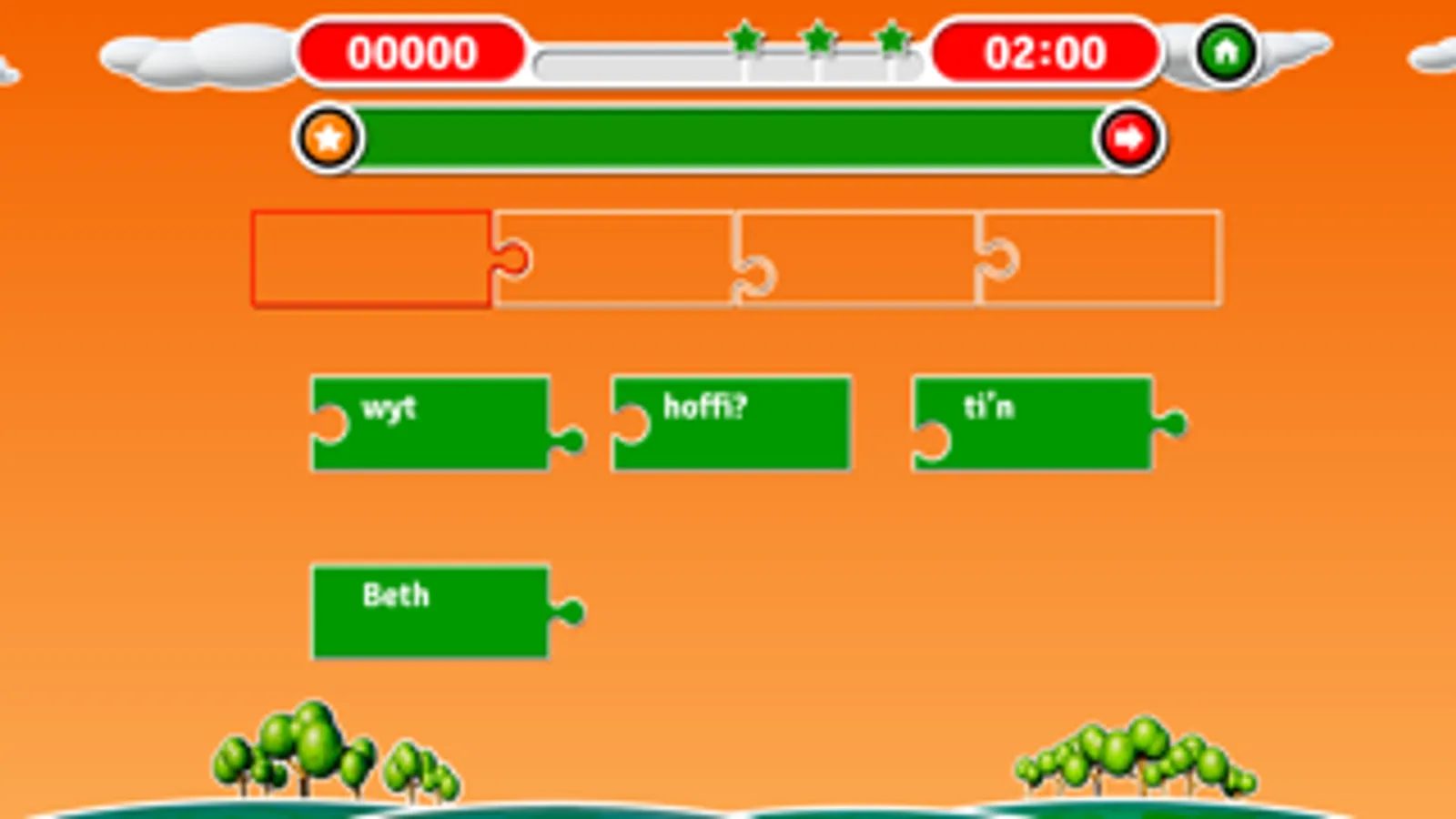 Rwyt ti’n cael bonws am ateb yn gywir. Os wyt ti’n cwblhau y 10 brawddeg cyn i’r cloc dy guro rwyt ti’n ennill bonws amser.