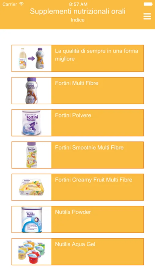 Applicazione mobile per una facile consultazione dei prodotti del Vademecum Nutricia relativo alla Linea pediatrica (catalogo prodotti per soddisfare i fabbisogni nutrizionali dei bambini sia in ambito ospedaliero, sia domiciliare).