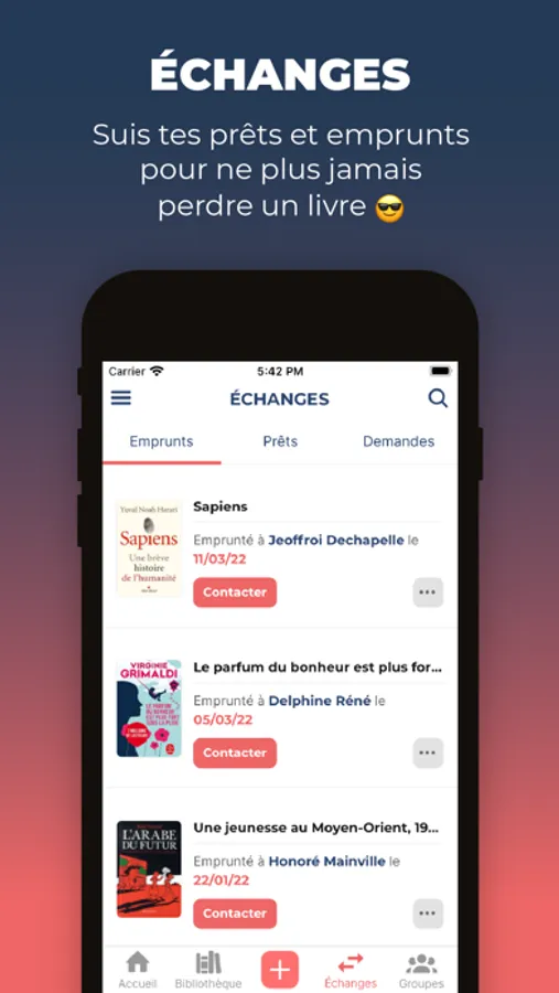 Grâce à l'application MyBlio, explore les lectures de ton entourage & partage tes livres dans la 1ère bibliothèque collaborative !