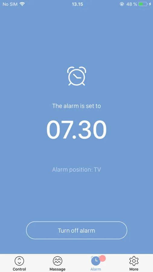 Use the LINAK Bed Control™ App to control up to four adjustment options (back, leg, neck and foot), and set the silent alarm to gently wake you up in the morning – with massage or slow movement to a favourite position. Specific features are only available for some bed systems.