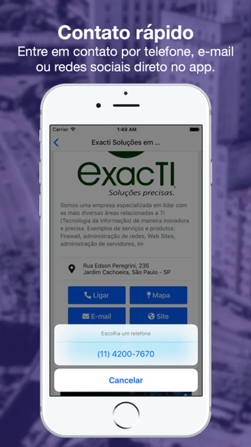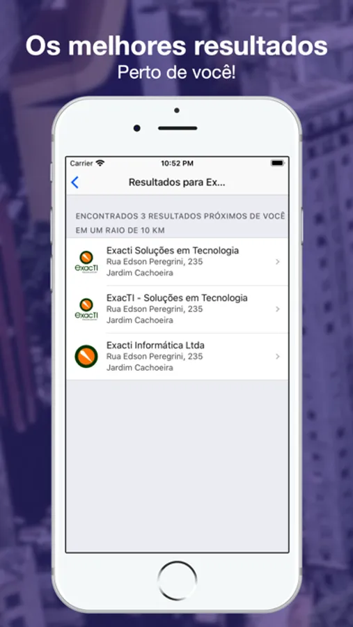 Encontre lojas, hotéis, farmácias, bancos, pizzarias, imobiliárias, mecânicas, supermercados, etc., tudo através de uma interface intuitiva e integrada com seu dispositivo iOS.
