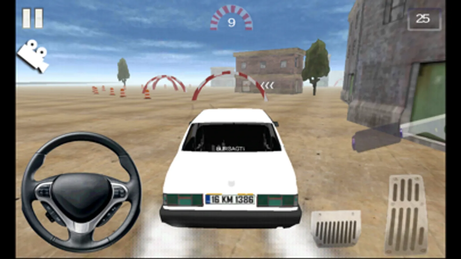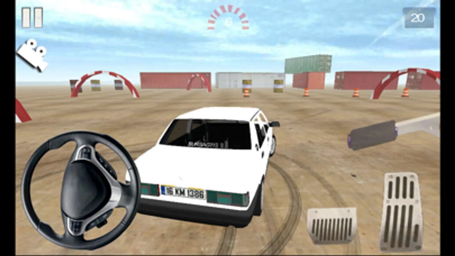 - Steering wheel, gas pedal and gearshift controls
