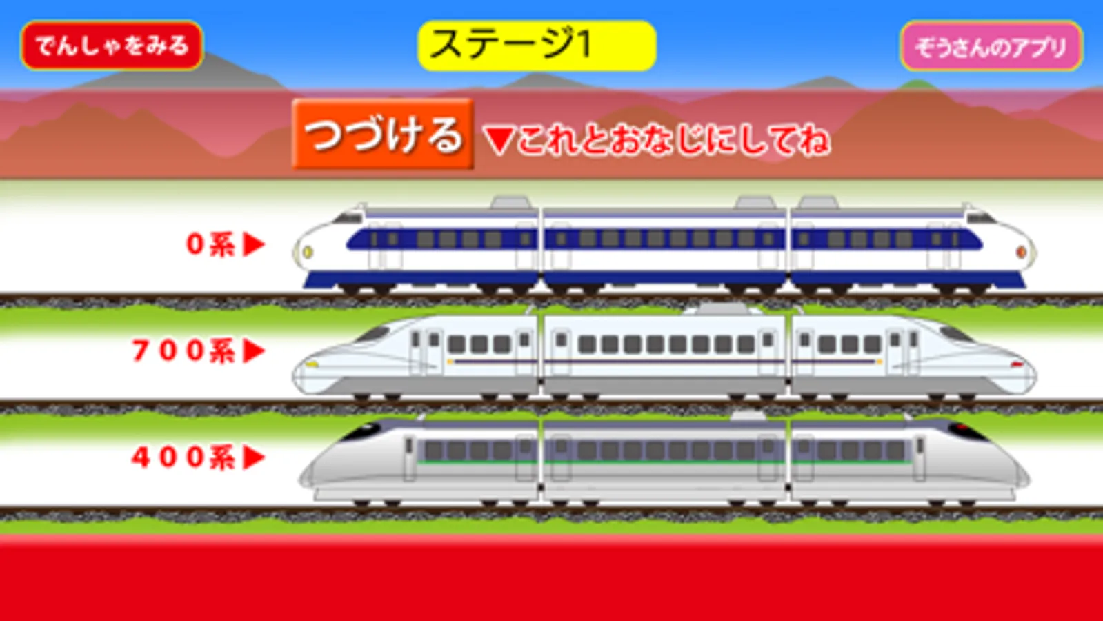 ゲームはランダムにいろんな組み合わせで新幹線が登場しますので
