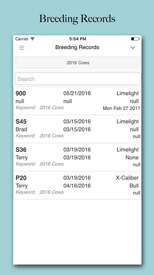 Instead of scrolling through a whole list of possibly hundreds of calves, simply search for the one you are looking for and edit it right from the search page!