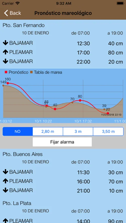 The measurement is made with our digital tide gauge and level in centimeters using the same reference as the rule in the Dique Lujan Tigre and San Isidro Port