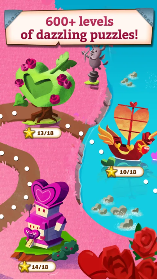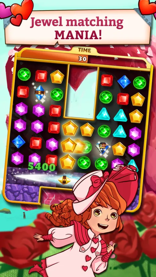 Swap glittering jewels to match 3 or more! Set the mood for a romantic atmosphere and watch the amorous animations in the all-new Jewel Mania Valentine’s Day!