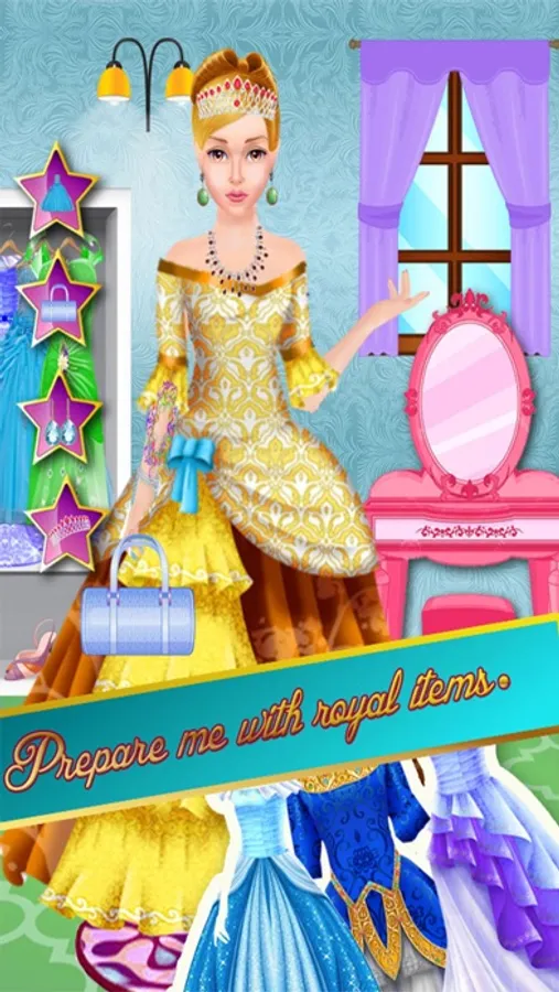For makeover she has plenty of royal jewelry available in her makeover salon she has various precious crowns, necklaces, ear rings & bracelets. To make her look like a star give her super looks wore her latest glasses and select some cool tattoos for her hand. To decorate her dresses her tailor has plenty of precious pearls to be added on dresses.