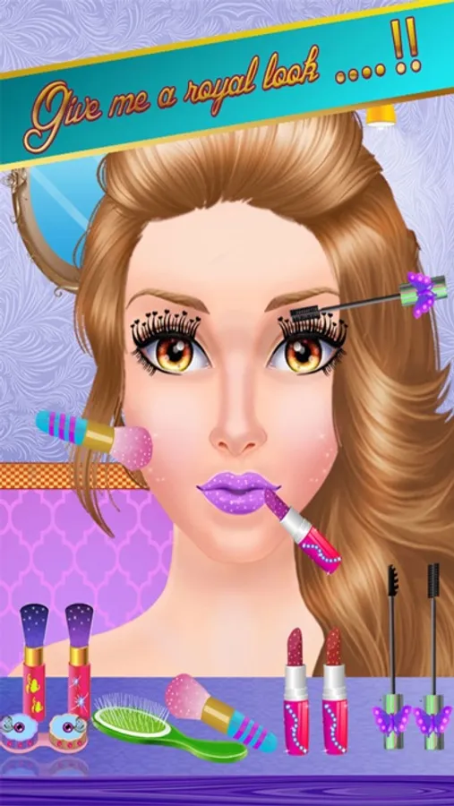 After spa take the queen to the royal beauty makeup salon where she has numerous make up kits for cheek shades, eyeshades, eye lashes, eye lenses & lipsticks. Use the shades that make her look pretty and cute.