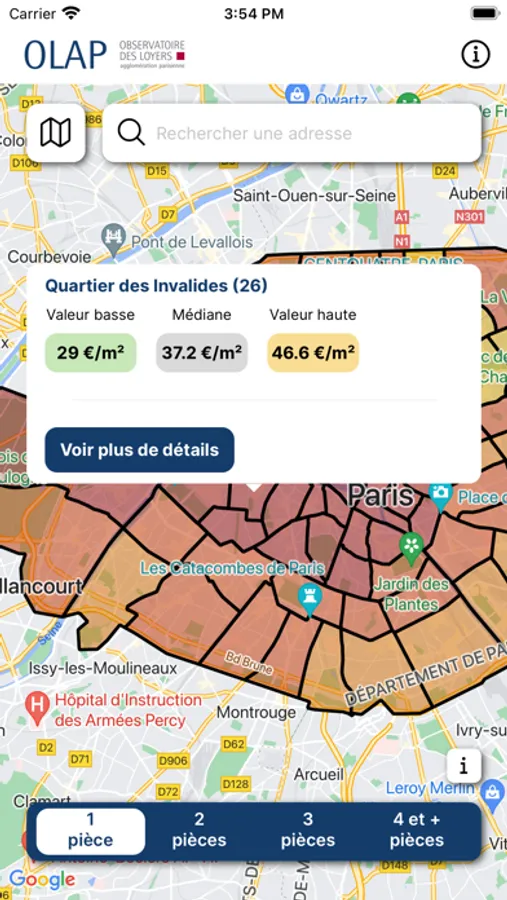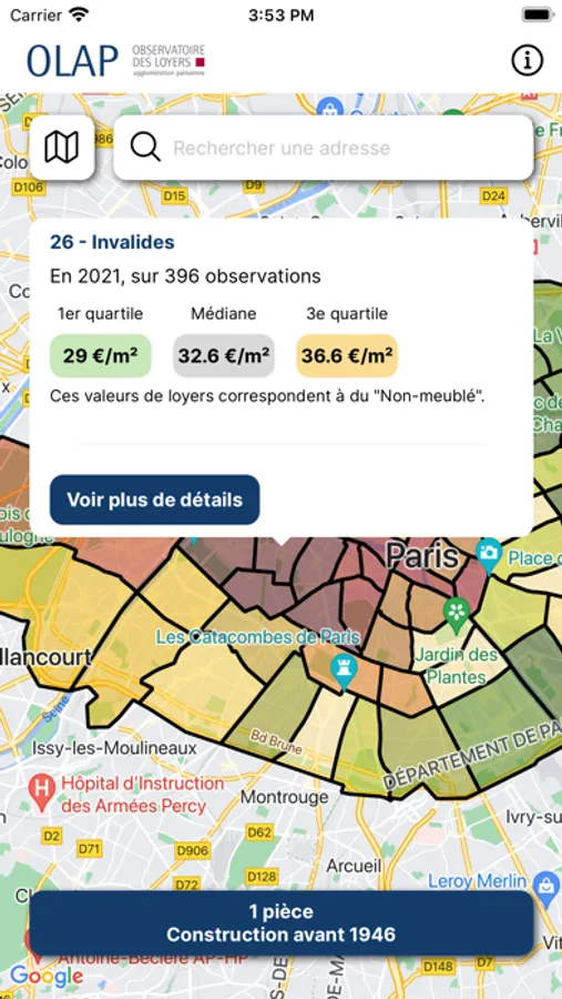 Application officielle de l’OLAP (Observatoire des Loyers de l’Agglomération Parisienne).