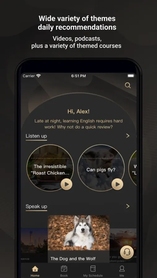 *Wide variety of themes, daily recommendations: videos, podcasts, plus a variety of themed courses