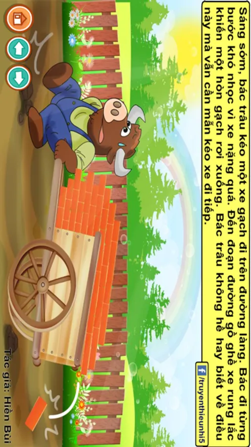 Một buổi sáng sớm bác trâu đi chở gạch. Bác kéo một xe gạch nặng. Đến đoạn đường gồ ghề chiếc xe rung lắc làm rơi ra một viên gạch. Bác trâu không biết gì mà vẫn kéo xe đi tiếp để lại viên gạch nằm ở giữa đường.