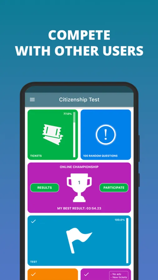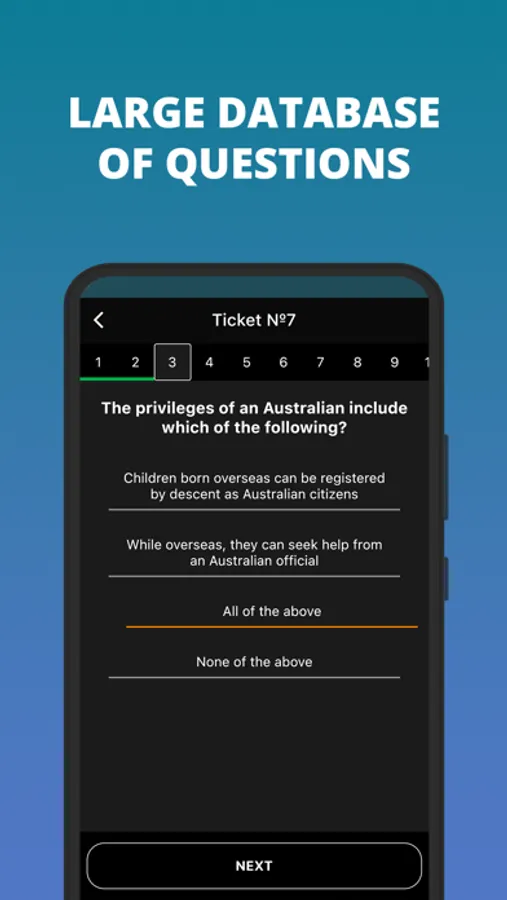 App contains the 580 newest civics (history and government) questions taken from gov.au. Best way to prepare you for the Australian Citizenship. App working in offline mode. You can train your knowledges in any places wherever you are. The Australian Citizenship Test is an oral test.You have 45 minutes to answer 20 questions. You must score 75% or more to pass the test.