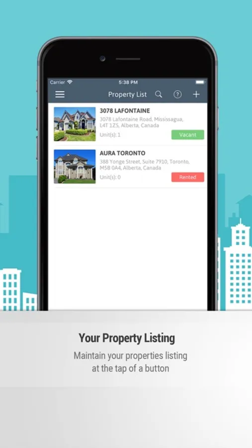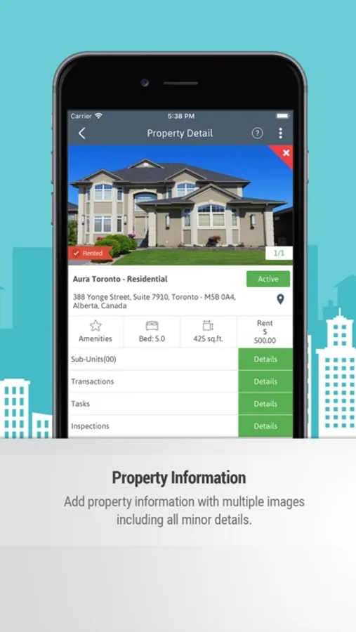 Properties: Store property name, address, save property as a single unit multi-unit, upload picture, the number of bedrooms, the number of washrooms, purchase price, down payment, room sizes, appliances details, utility company details and more.