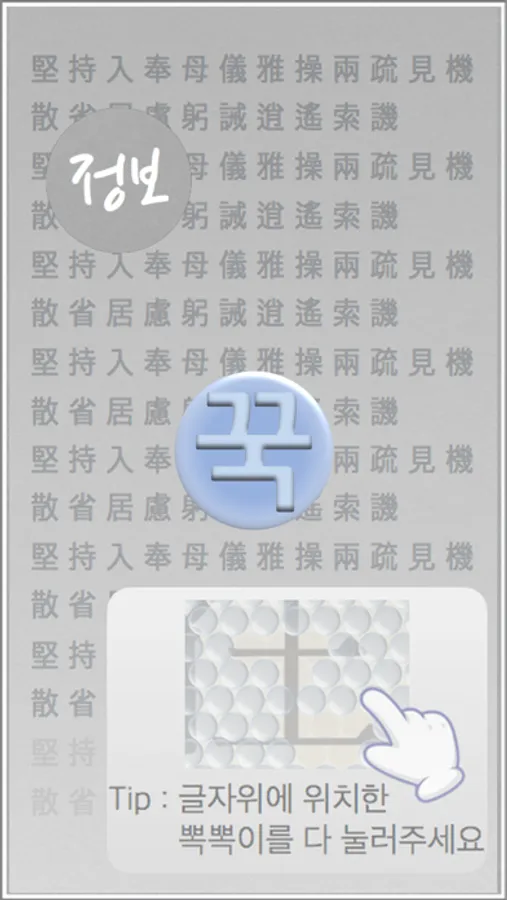 한자 위에 위치한 뽁뽁이를 꼭! 꾹! 하며 한자를 한번 더 보세요!