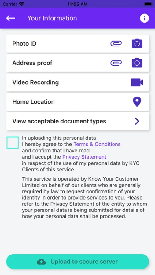 4. Let the app upload the documents to our secure server. The documents will be processed and the company that requested the verification will notify you when the process is completed.