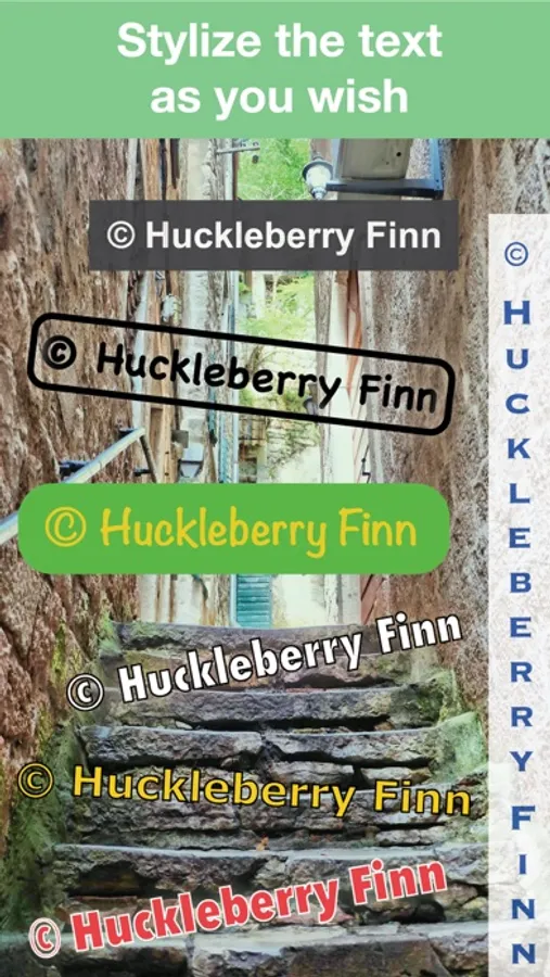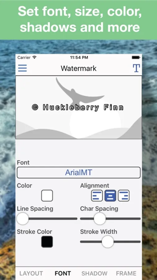 Choose the font (more than 70 fonts are available), size, color, background color for your watermark, add shadows and more.