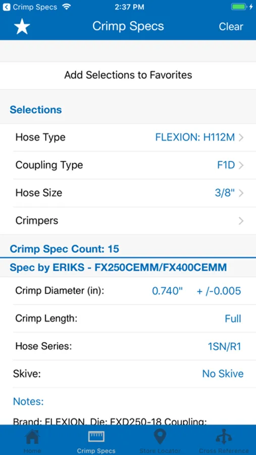 ERIKS MyCrimp application provides users with the up to date specifications to properly crimp ERIKS selection of hydraulic hose and fittings. Users can search by hose style, coupling style, hose size, and crimper. The application contains all the information required to properly setup and crimp the desired hose and fitting. In addition to crimp specifications, the app also includes a cross reference to assist in finding the correct ERIKS product number.