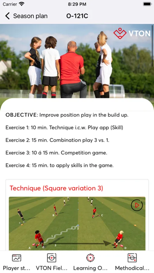 The offline VTON-Coach app is part of the VTON platform, the platform developed for and by (youth) coaches in the Netherlands. It contains a unique curriculum per age category and all training sessions are based on objectives. The methodology contains 900 unique exercises, 972 training sessions, multi-week, and annual programs.