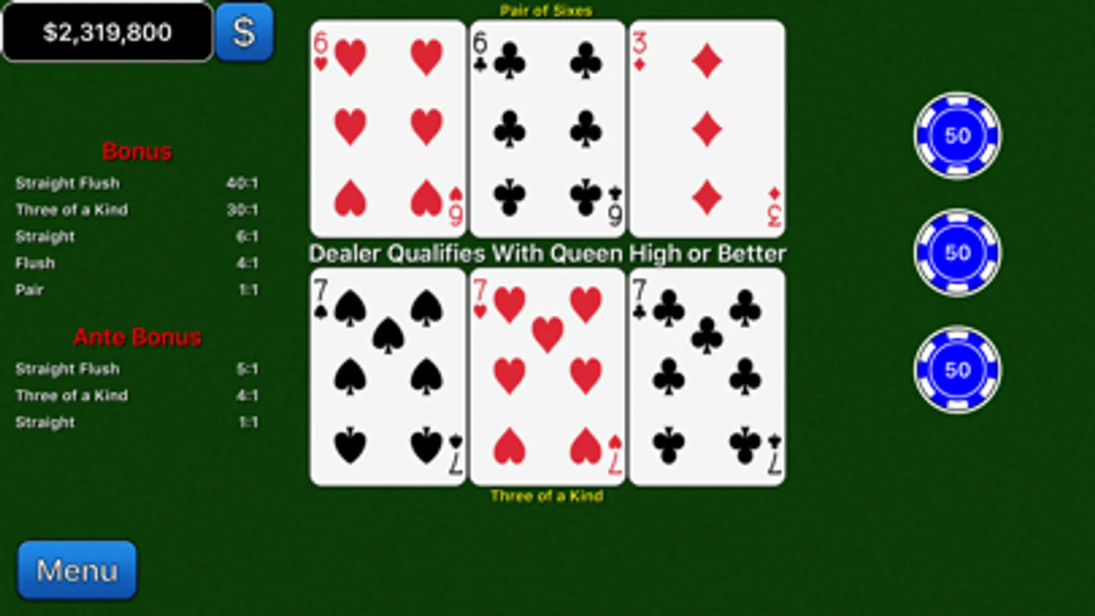 Are you ready to play some poker? VIP Table 3 Card is now available for Free. VIP Table 3 Card will make you feel like you are right there in the action with stunning realistic graphics and smooth gameplay. Do you have what it takes to make it all the way up from the low limit tables to the VIP tables?