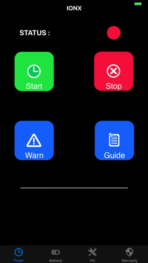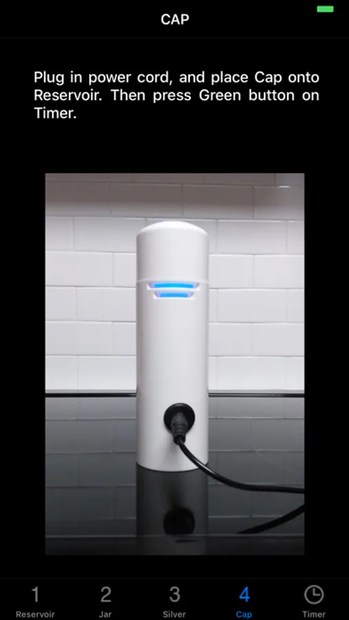 iPhone timer app lets you know when the process is complete at a recommended 10 nanometer size particles. In an effort toward sustainability, the application includes sections: Timer, Operating Instructions, Warning Label, Warranty Info, and Troubleshoot.