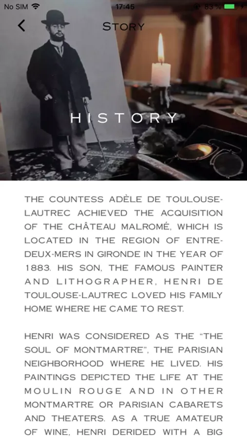 THE COUNTESS ADÈLE DE TOULOUSE-LAUTREC ACHIEVED THE ACQUISITION OF THE CHÂTEAU MALROMÉ, WHICH IS LOCATED IN THE REGION OF ENTRE-DEUX-MERS IN GIRONDE IN THE YEAR OF 1883. HIS SON, THE FAMOUS PAINTER AND LITHOGRAPHER, HENRI DE TOULOUSE-LAUTREC LOVED HIS FAMILY HOME WHERE HE CAME TO REST.
