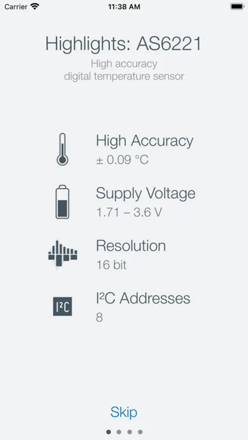 The ams AS62xx Temperature Sensor App allows you to interact with the AS62xx Demo Buttons. It enables you to modify all available parameters and explore the full feature set of the sensor.