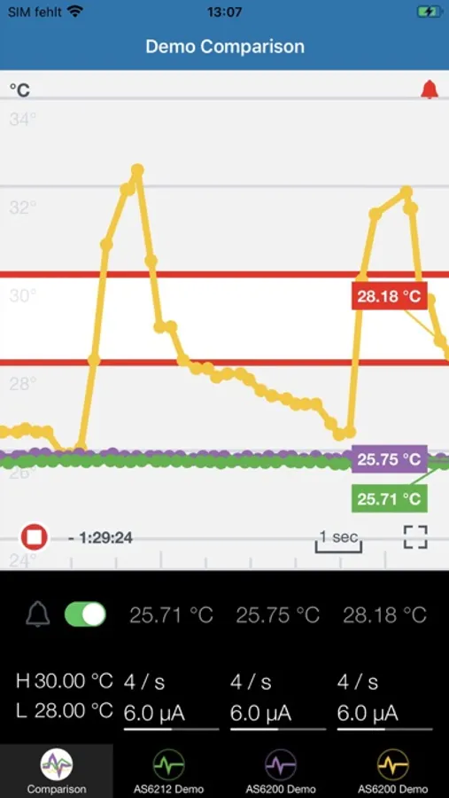 - Readout the temperature value and monitor it in a graph in °C or °F