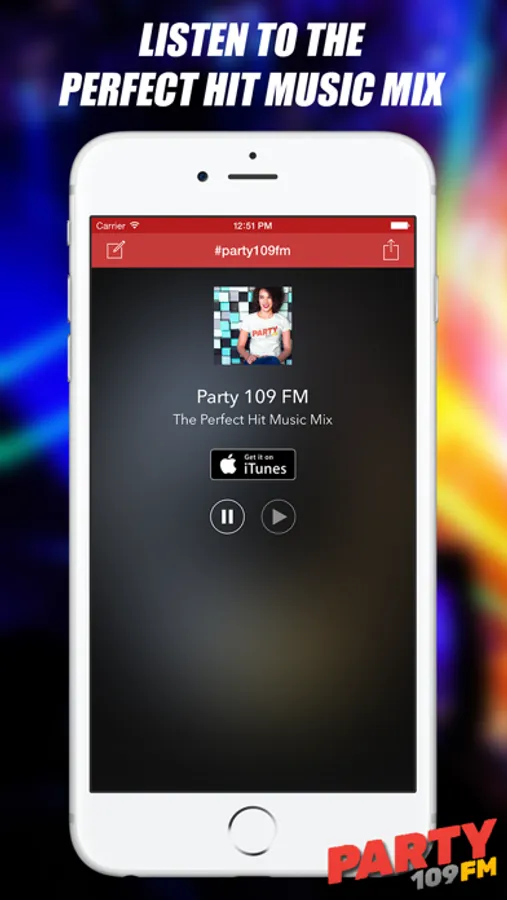 Listen to the perfect hit music mix on your iPhone, iPad or iPod Touch with the Party 109 FM app.