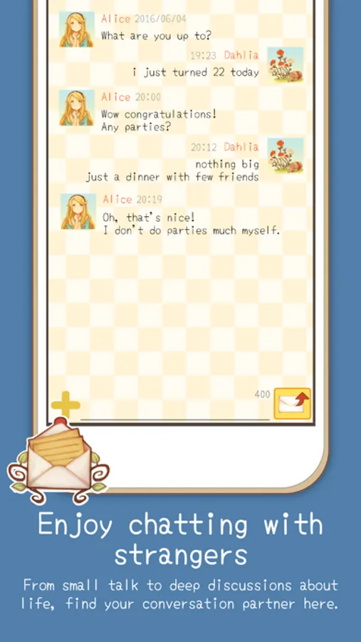In the lovely atmosphere of the Alice in Wonderland, you can talk with strangers about what is on your mind.