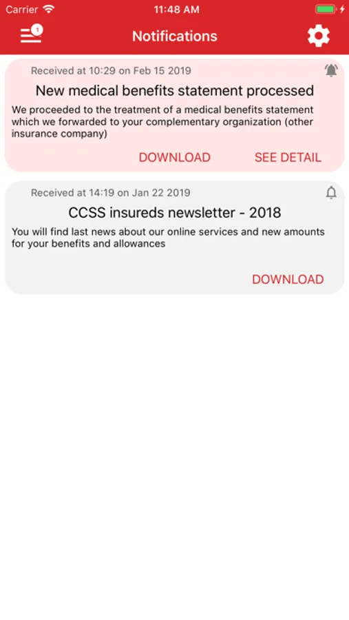 NEW : A direct access to online services and notifications on each treatment of your benefits statements or allowances.