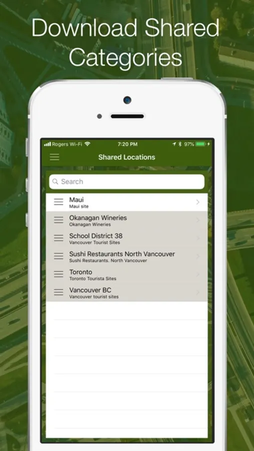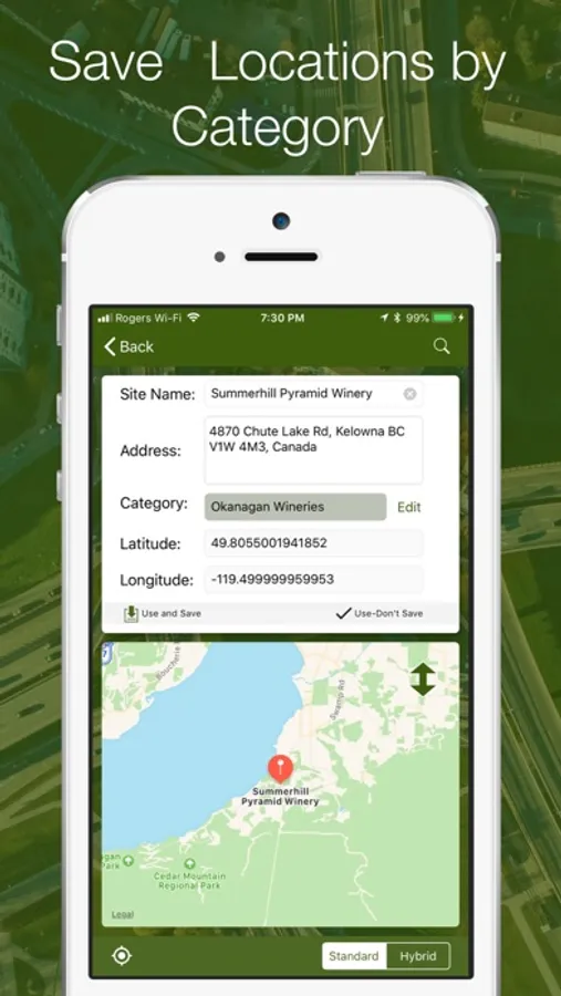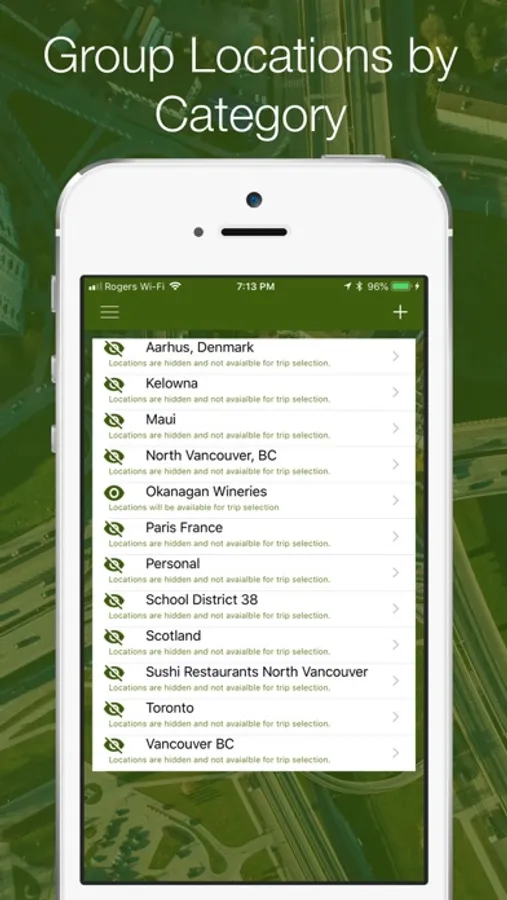 Plan your vacation destinations ahead of time by locating them on the map and storing them in a vacation category.