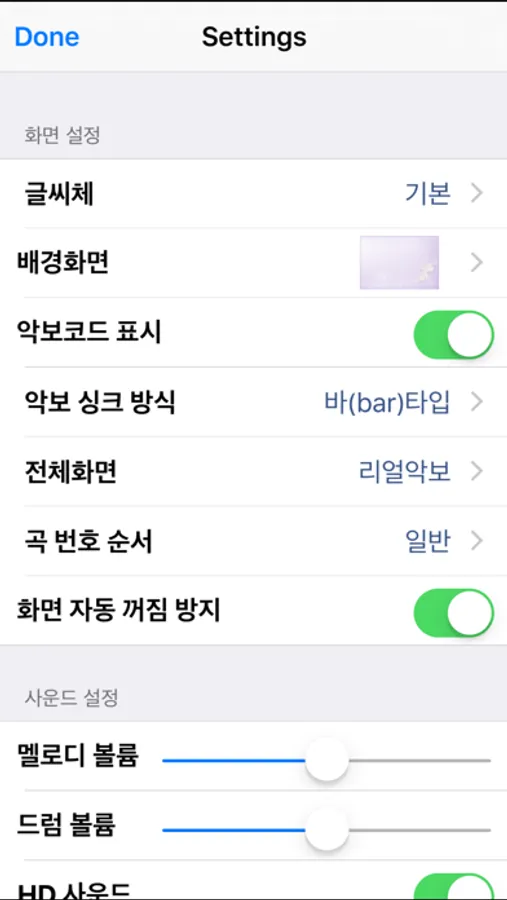 - 악보보기시 코드보기를 설정할 수 있습니다.