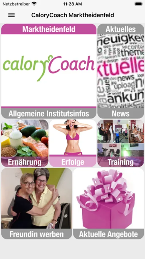 Mit der CaloryCoach Institut-App haben Sie Ihr Bewegungs- und Ernährungsinstitut speziell für Frauen immer dabei. Informationen wie z.B. der aktuelle Kursplan, Ernährungsvorträge, Events und laufende Angebote sind ständig aktuell und griffbereit!