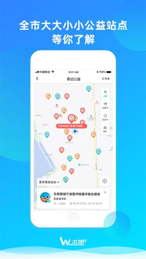 这里可以搜索全城公益地图:全市大大小小的志愿服务实体阵地、各类志愿服务岗位、活动“一网打尽”,时时可报名,处处可参与。