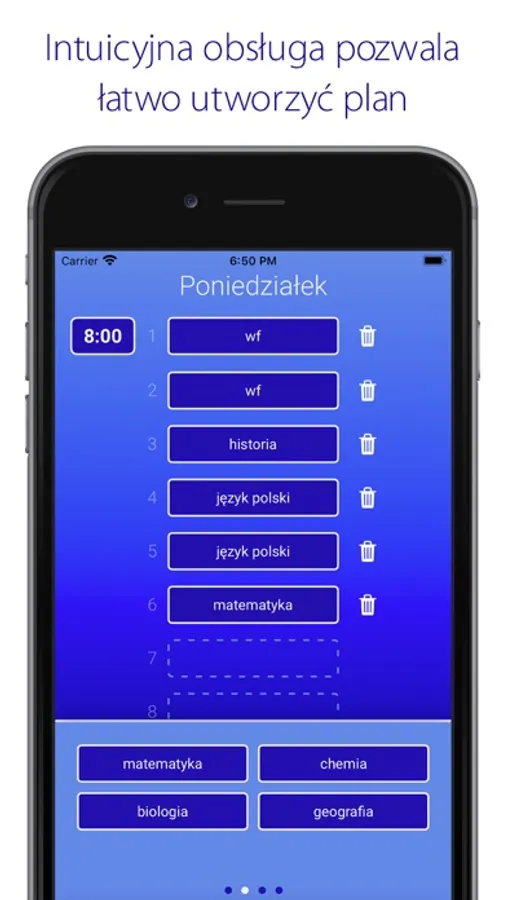 • wskazujesz, o której godzinie zaczynasz lekcje, podajesz długości przerw, a program już sam wyliczy godziny rozpoczęcia i zakończenia poszczególnych lekcji,