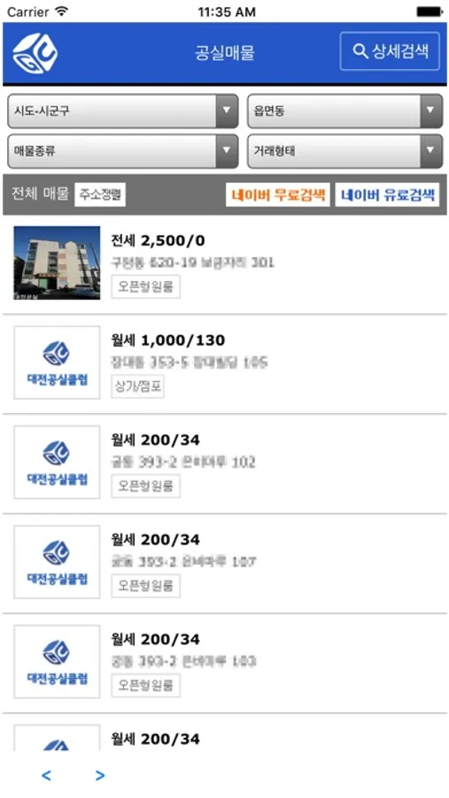 - 검색조건을 보다 간편하게 매물을 검색할 수 있습니다.