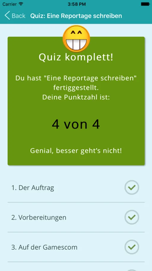 Für die meisten Kompetenzen gibt es interaktive Quizaufgaben. Mit lustigen und lehrreichen Fragen zu den Versteheinheiten kapierst du den Schulstoff sofort. Mehr Quizze folgen in Kürze!