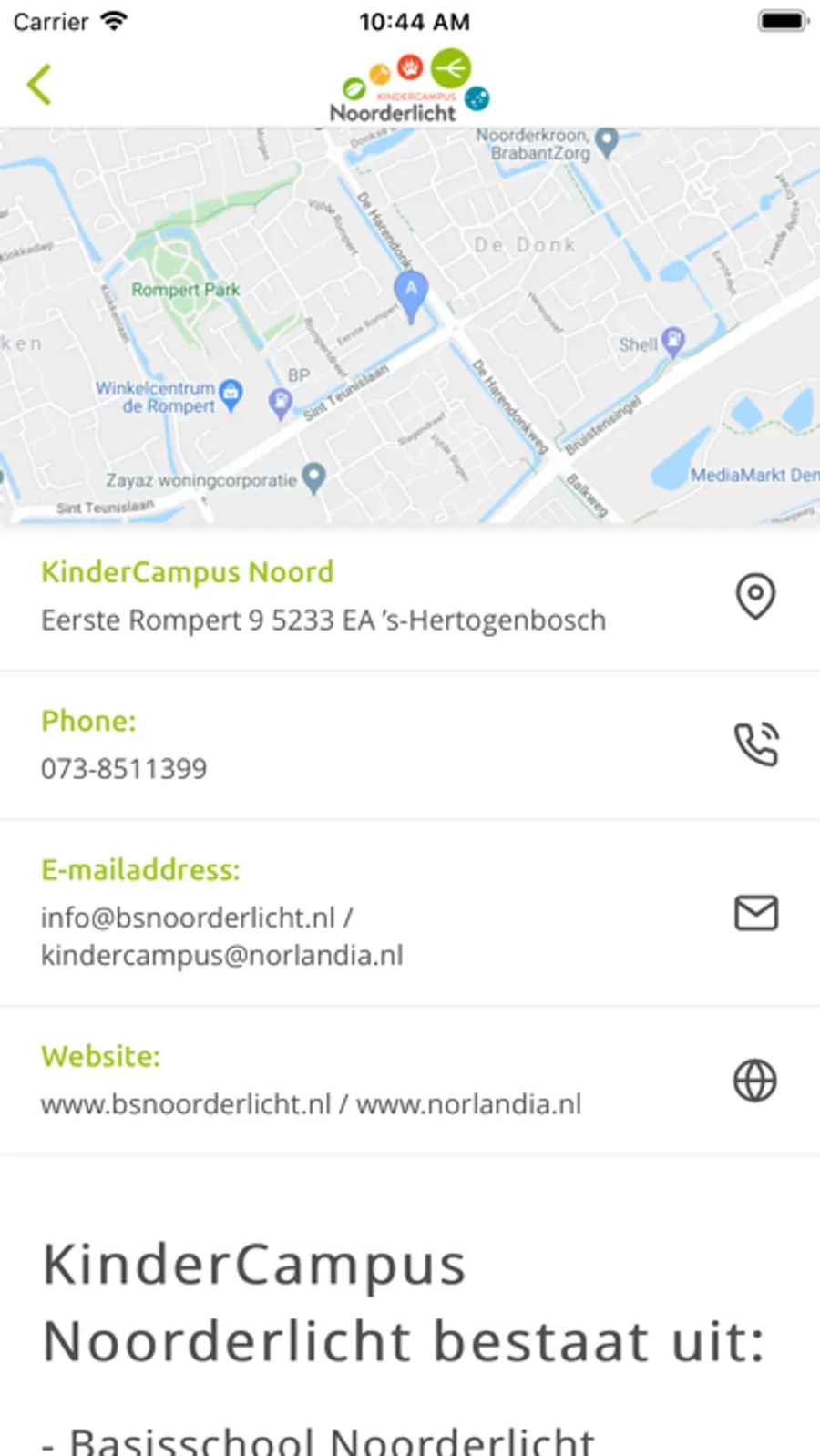 KinderCampus Noorderlicht is nu nog gevestigd in twee gebouwen in het noorden van ’s-Hertogenbosch. In en bij de school zijn bovendien tussenschoolse opvang (overblijven), een kinderdagverblijf en naschoolse opvang gevestigd.