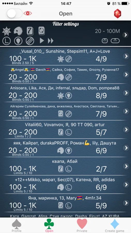 Play online with friends or random players from around the world. Play from 2 to 9 people on virtual chips, so all kinds of game modes are not gambling and entertainment only. The game requires a permanent internet connection.