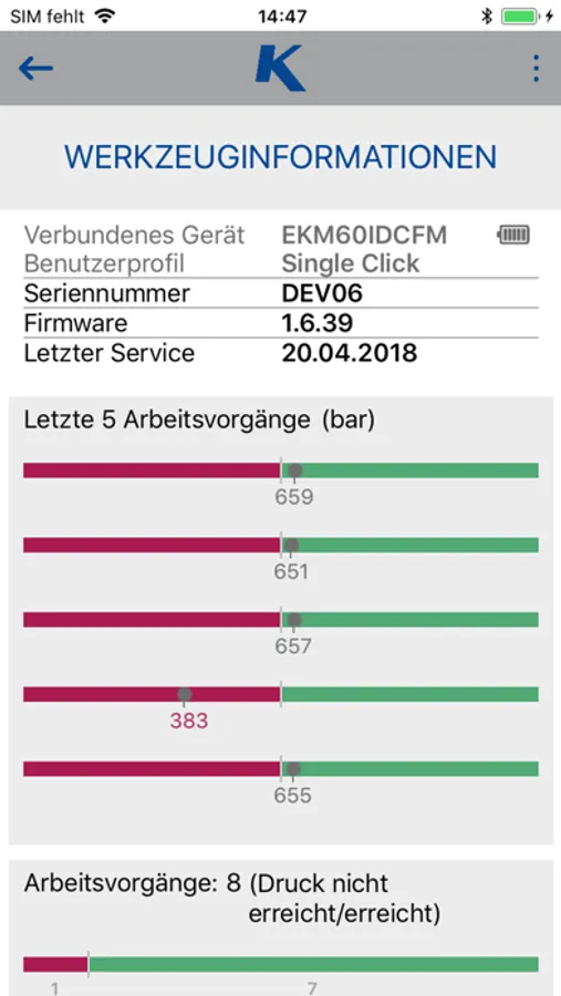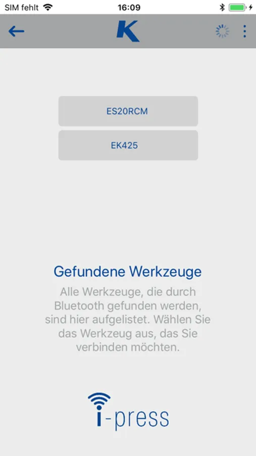 Mit der i-press App, können Sie Einstellung an Ihrem Klauke Werkzeug vornehmen und Werkzeugdaten auslesen. Dazu müssen Sie Bluetooth aktivieren und das Werkzeug mit Ihrem Smartphone oder Tablet verbinden. Bei aktiver Verbindung besteht die Möglichkeit sich die Werkzeuginformationen wie z.B. Anzahl der Pressungen oder Betriebsstunden anzeigen zu lassen. Die i-press App liest auch die auf dem Werkzeug gespeicherten Benutzerprofile aus und ermöglicht das wechseln dieser.