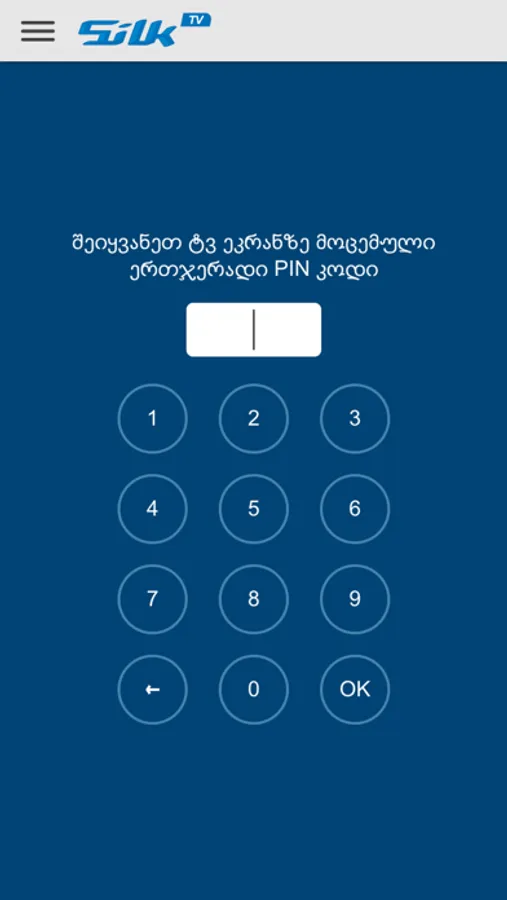 In order to start using Silk TV Remote App, please enter one time PIN code for pairing it to Silk TV Set Top Box.