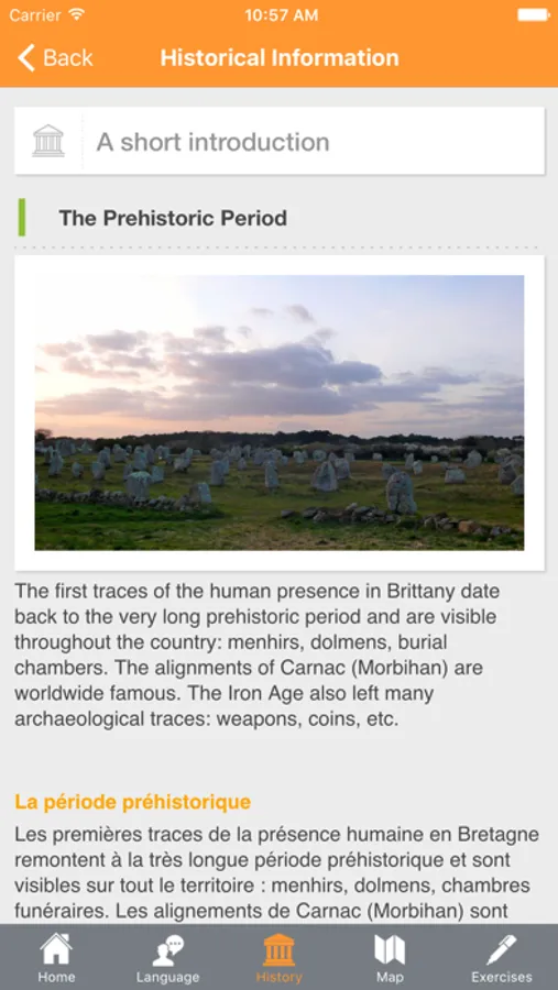 An innovate and user friendly app for supporting Breton regional language. Including vocabulary and dialogues (A1, A2 levels). Elaborated with photos, sound and videos. Containing historical and cultural information of the region and virtual maps with info on interesting places to visit.